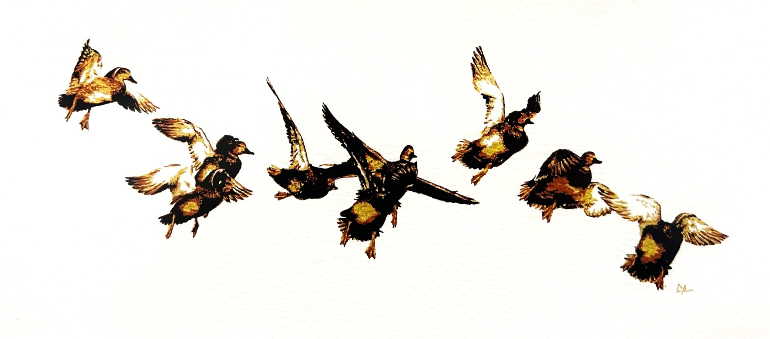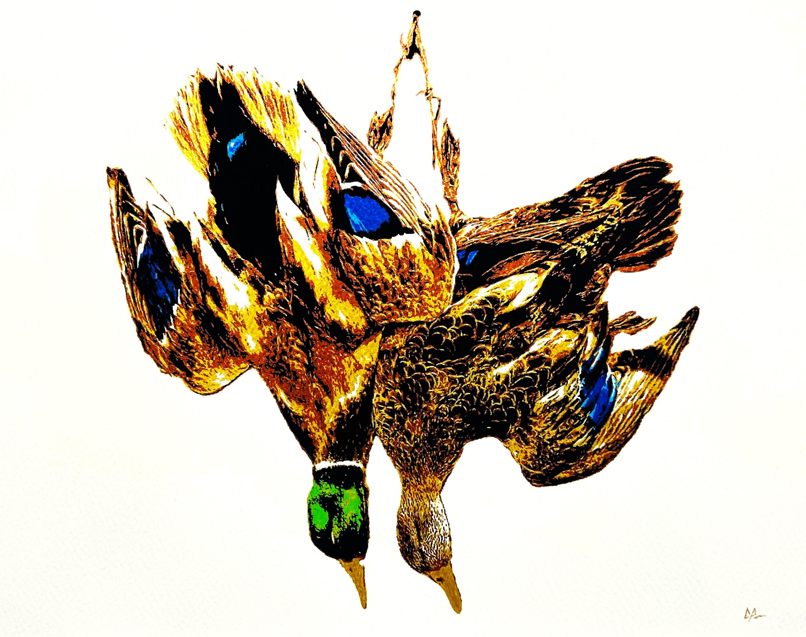 Clayton Pennell is a naturalist, conservationist, and internationally known contemporary wildlife artist. His high-impact art portrays wildlife in a new light by taking a modern approach to classical sporting art. He developed this distinctive style during his time as a hunting and fly-fishing guide, where he mixed his love of the game he pursued and his love for classical sporting art and etchings in a new form of sporting art that is made with Ink, Acrylic Paint, and 24k Gold and Copper. The 24k Gold and Copper paint he creates himself adds a stunning effect and symbolizes the value sportsmen see in wildlife. Clayton’s work has raised hundreds of thousands of dollars for conservation, with his work having been sold to art collectors across the globe. As a true believer in conservation, he has dedicated a portion of all profits from his art sales to go towards conservation efforts. Clayton’s studios reside in the Piedmont and Blueridge of North Carolina..